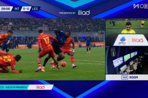 体育资讯01月15日讯 国米vs莱切第25分钟,博尼禁区内倒地,裁判给了点球,但到场边看VAR后,裁判判罚不是点球!