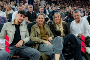 欧洲篮球联赛,拜仁主场97比88击败红星,拜仁俱乐部主席海纳、拜仁中场帕夫洛维奇、拜仁女足球员达姆贾诺维奇、格温现场观看比赛,为拜仁男篮助威。