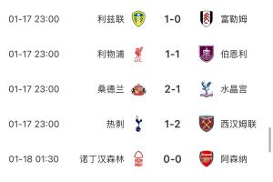 体育资讯01月18日讯 英超第22轮,阿森纳0-0客平森林。