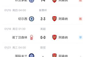 体育资讯01月18日讯 英超第22轮,阿森纳0-0森林,联赛两连平。