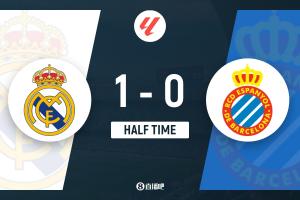 体育资讯9月20日讯 北京时间9月20日22时15分,西甲第5轮,皇马坐镇伯纳乌球场迎战西班牙人。上半场,米利唐世界波首开纪录。半场战罢,皇马暂1-0领先西班牙人。