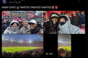 体育资讯1月26日讯 在曼联3-2击败阿森纳后,曼联名宿阿什利·扬更新了社交媒体,晒出了自己在现场观赛的照片。