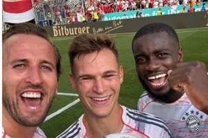 本场比赛凯恩上演帽子戏法,拜仁官推也在赛后晒出凯恩与队友基米希、于帕以及比赛用球的合影。