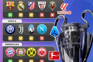 外媒统计5大联赛球队的晋级情况:金钱与成功之间存在极强关联性