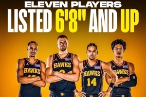 算上双向合同球员,老鹰全队共有13名球员超过6尺8寸(约2.03米)!