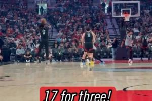 GIF-开拓者球迷嘉年华队内表演赛,杨瀚森和夏普手递手配合,后者接球漂移三分落袋
