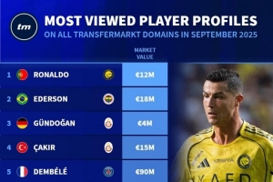 德转9月球员页面浏览量排名: