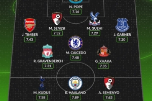 前锋:库杜斯(热刺)、哈兰德(曼城)、塞梅尼奥(伯恩茅斯)