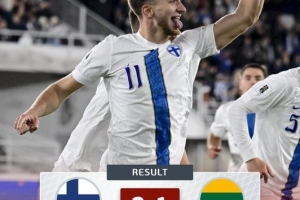 体育资讯10月10日讯 世预赛欧洲区小组赛G组第7轮比赛,芬兰在主场以2-1的比分战胜立陶宛。本场比赛之后,先赛的芬兰暂时位居小组榜首。