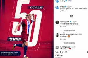哈兰德在配文中写道:“第50球很特别……但第51球的感觉会更好😉🇳🇴”
