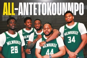 相关链接→美媒晒五人全是字母哥阵容:踢足球的大哥也来凑数了