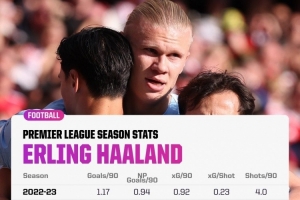 体育资讯10月17日讯 据Opta统计,哈兰德本赛季每90分钟射门、进球等数据创造英超生涯新高。