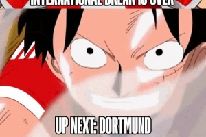 赛前,拜仁晒出本场预热海报,主角是身穿拜仁球衣的著名动漫《海贼王》角色路飞,海报写着:国际比赛日间歇期结束,下一站多特。