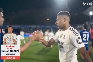 此役姆巴佩破门制胜,赛后他也是当选全场最佳球员。
