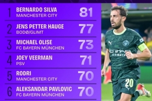 下一篇: 欧冠单轮进球数量榜:本轮18场比赛71球居首,本赛季首轮67球次席