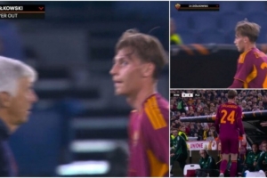 《罗马体育报》表示,齐奥尔科夫斯基对这次换人很不满,他先是冷眼看向罗马主帅加斯佩里尼,勉强和对方握手,随后回到替补席。罗马老将克里斯坦特主动和他击掌,试图安慰这位小将。而齐奥尔科夫斯基坐在替补席上也不停嘟囔着,显然很不开心。而罗马领队托达罗之后也来到一旁和他交谈,可能是在安抚他。