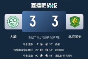体育资讯10月25日讯 在周中进行的亚冠二级联赛小组赛比赛中,北京国安客场3-3与中国香港球队大埔战平,