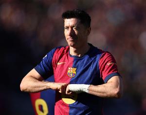 37岁的莱万本赛季为巴萨各项赛事9场打进4球,德转身价1000万欧元。