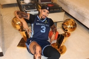 她的模仿对象是他的丈夫波普,她给自己化了个仿妆,弄伤了假胡子,然后穿上了波普的球衣,还搬出了波普的冠军奖杯。她还用这个造型和波普打了个视频电话。