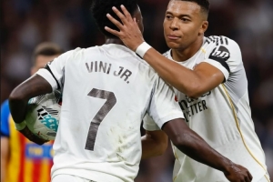 本场比赛上半场皇马两度获得点球机会,姆巴佩先是主罚命中,第二球维尼修斯主罚被扑出。赛后维尼修斯也在社媒晒出两人拥抱合照,配文写道:“对你来说这很容易❤️”