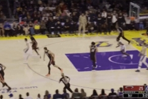 GIF-东契奇四分卫超远助攻拉拉维亚扣篮得分