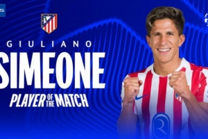 此役朱利亚诺-西蒙尼为马竞首发出战,助攻阿尔瓦雷斯破门,他当选本场比赛欧冠官方全场最佳球员。