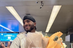 夏晓司晒出球迷接机照,并写道:“克里斯昨晚归来,开始备战新赛季。”