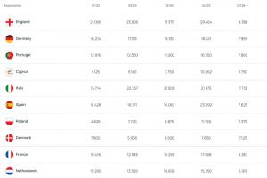 欧战本赛季最新积分:英格兰、德国、葡萄牙前三,塞浦路斯第四!