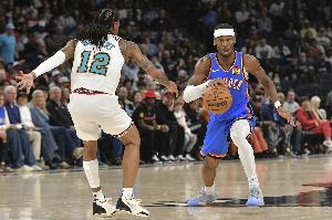 上半场比赛,双方在三分投射方面差距不小,灰熊多点开花,24中11,命中率高达45.8%;雷霆则是仅26中5,命中率19.2%。