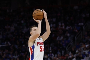 活塞球员邓肯·罗宾逊在康宁汉姆等人轮休的情况下成为球队的主要得分点,他首节也用火热的手感帮助球队取得领先。