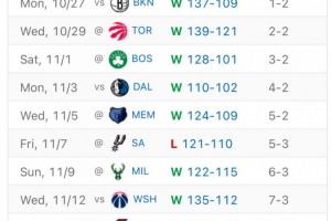 赛后美媒NBACentral晒出了火箭这11场比赛赛果,写道:“火箭打出了统治力。”