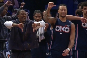 GIF-卡鲁索快攻不扣篮 雷霆替补席集体弱爆了招呼