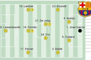 体育资讯11月25日讯 北京时间明天凌晨4点,巴萨将在欧冠联赛阶段第五轮比赛中客场对阵切尔西,西班牙媒体《阿斯报》预测了巴萨此役的首发阵容。
