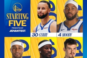 赛前勇士官方公布了本场首发:库里、穆迪、巴特勒、小佩顿、波斯特。