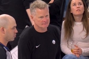 GIF-库里进攻犯规,科尔挑战失败