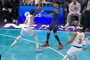GIF-拉梅洛·鲍尔欲单手秒传 直接结结实实砸到了布伦森的脑袋
