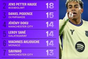 上一篇: 本赛季欧冠创造机会榜:姆巴佩20次居首,维尔茨次席,索博第三