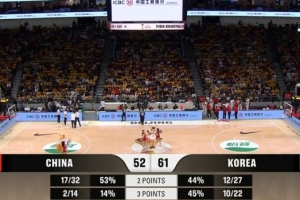 体育资讯11月28日讯 男篮世亚预阶段一,中国男篮三节52-61落后韩国男篮。