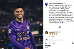 体育资讯12月1日讯 2025中超联赛已落下帷幕,最终天津津门虎排在联赛第6位。津门虎外援萨尔瓦多在社媒发文,对赛季进行总结。