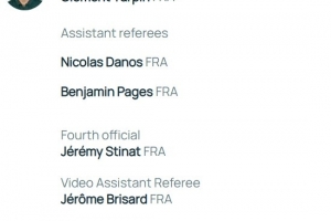 视频助理裁判:杰罗姆-布里萨、马蒂厄-韦尔尼斯