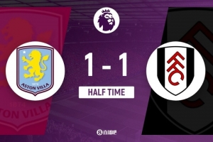 伤停补时2分钟。上半场比赛结束,阿斯顿维拉1-1富勒姆。