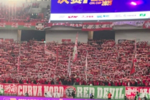 据足球报报道,现场助威的大批河南球迷已经点燃了苏州奥体中心的看台。