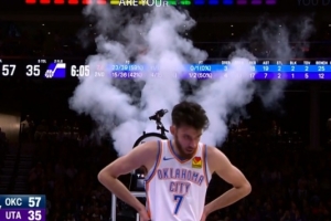 GIF-烟雾机突然启动致比赛暂停 处理后比赛恢复