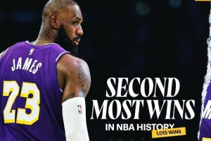 体育资讯12月8日讯 NBA常规赛,湖人客场112-108击败76人。詹姆斯收获了他生涯第1015场常规赛胜利,独居历史第二。