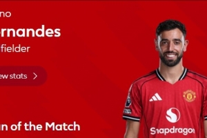 体育资讯12月9日讯 英超官方宣布,B费当选曼联4-1狼队的球迷票选最佳球员。