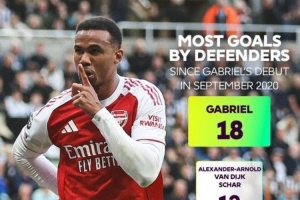 最强带刀后卫?自英超首秀以来,加布里埃尔打入18球冠绝英超后卫