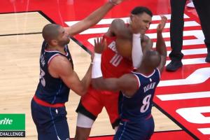 GIF-祖巴茨两罚中一,小史密斯抢板抡肘犯规
