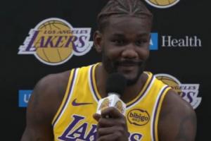 体育资讯09月30日讯 今天,湖人新援中锋艾顿参加了球队媒体日活动。