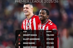 体育资讯12月16日讯 Stan Sport统计表明,扎卡是本赛季英超跑动距离最多的球员,前三中有两名桑德兰球员。