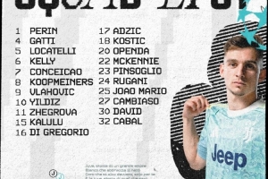 尤文公布欧冠客战黄潜21人名单:弗拉霍维奇、伊尔迪兹、戴维领衔